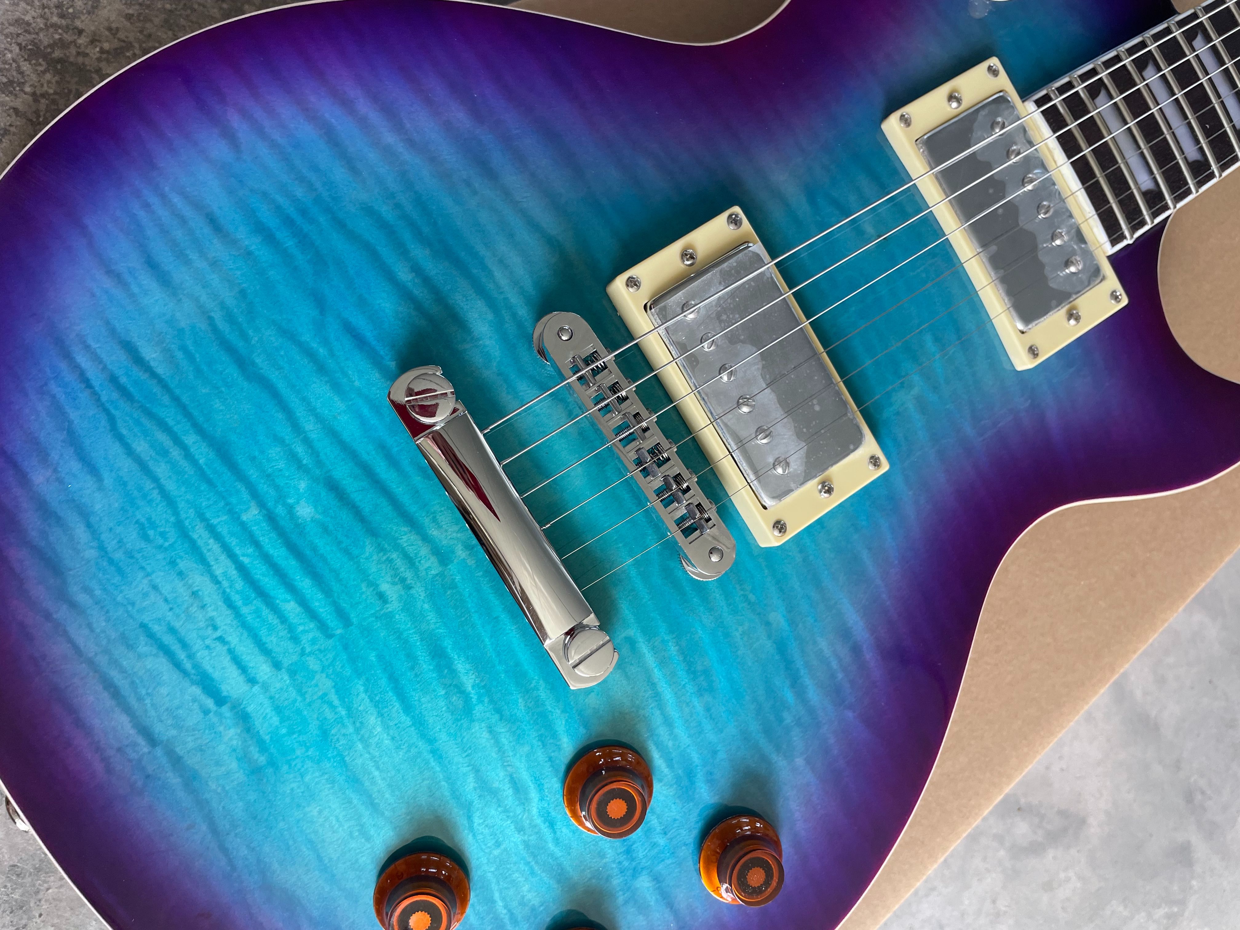 92% OFF | 6 String LP Electric Guitar Purple Blue 2H Pickup Fixed Bridge