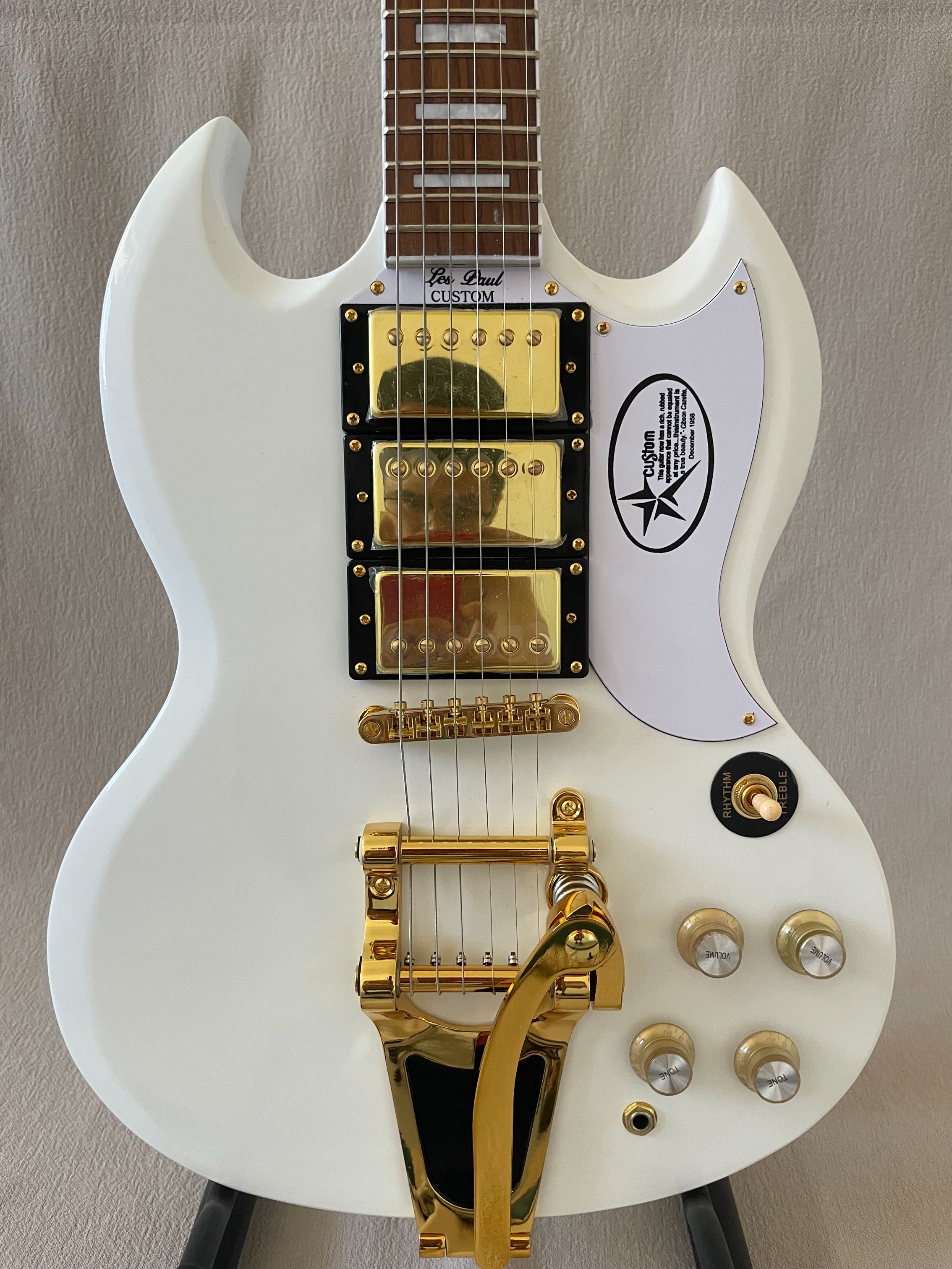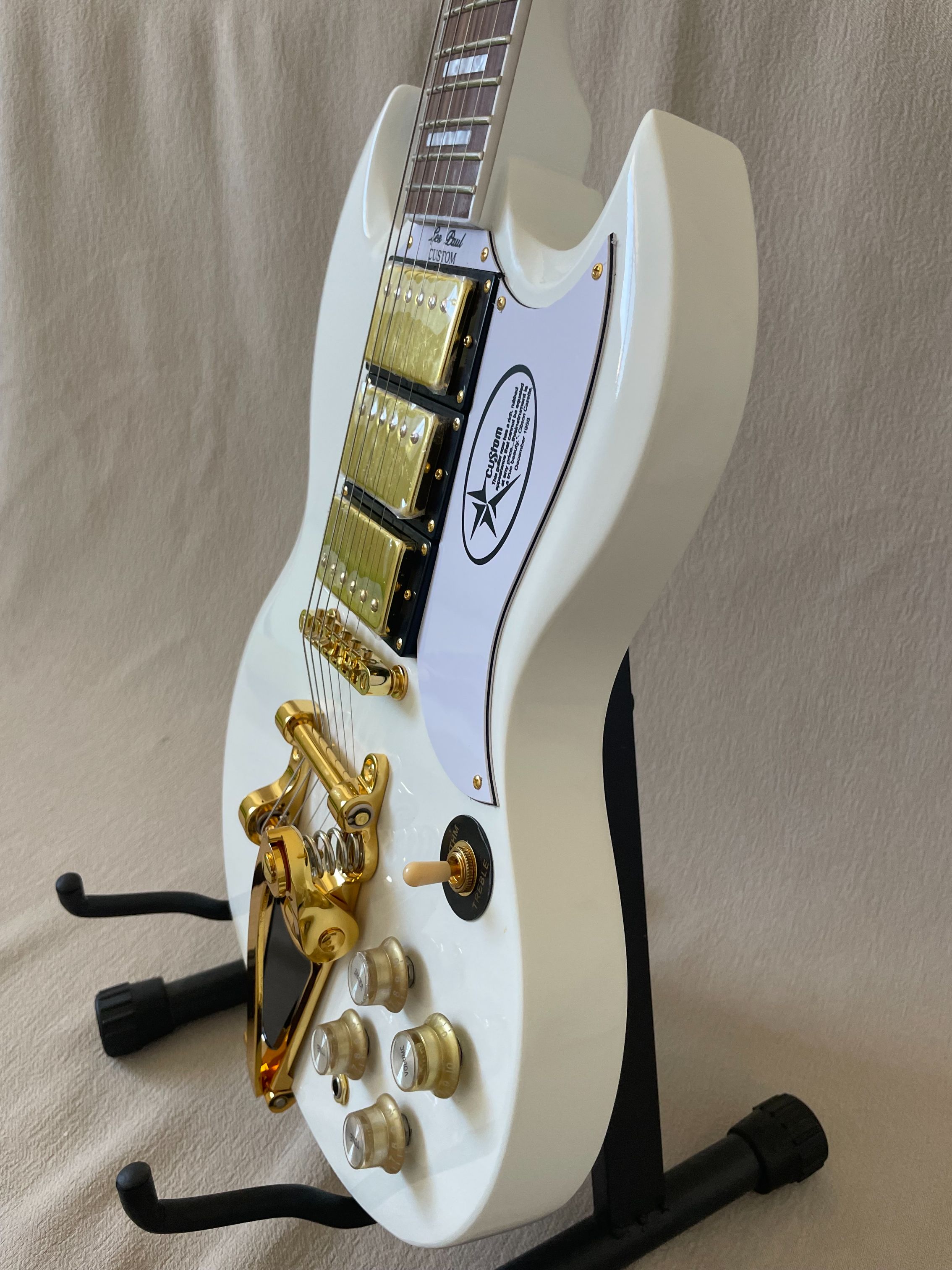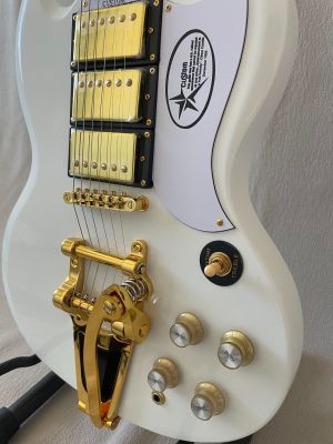 94% OFF | Double Cut High-Gloss White SG Electric Guitar Large Tremolo Bridge Gold Hardware