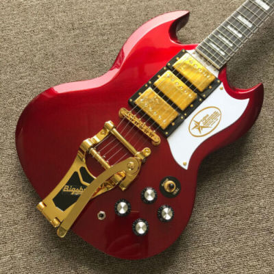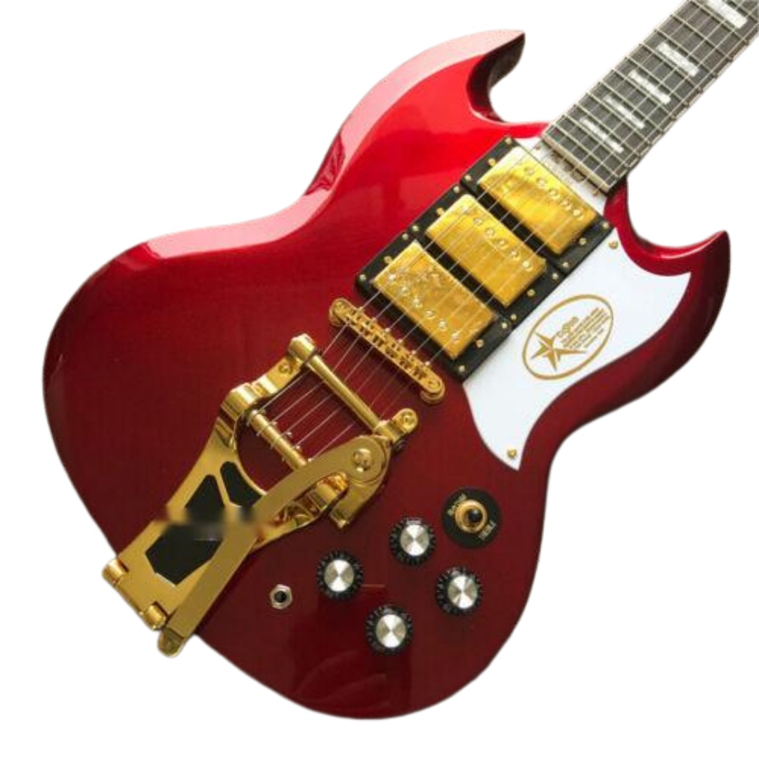 94% OFF | Double Cut High-Gloss Red SG Electric Guitar Large Tremolo Bridge Gold Hardware