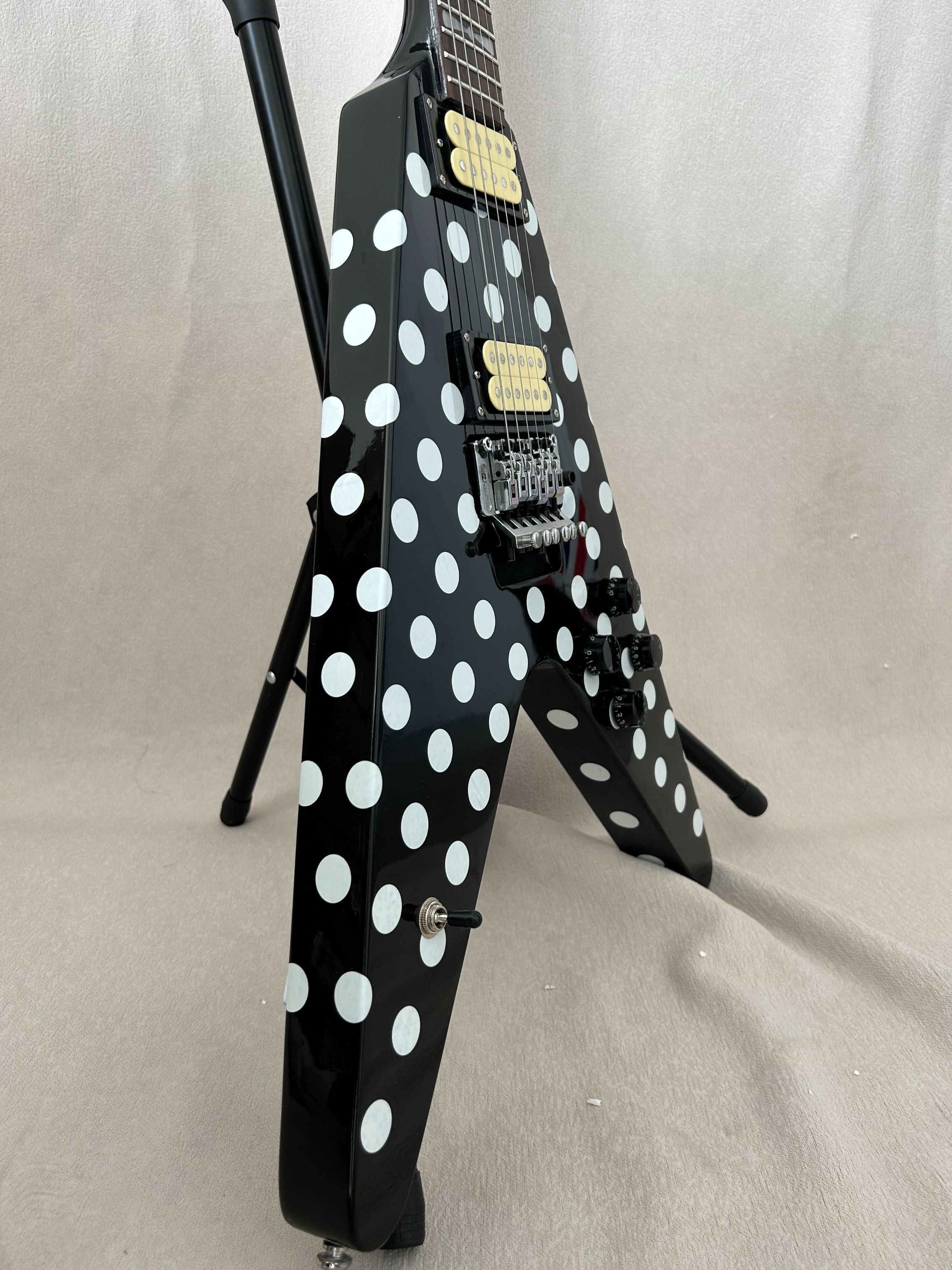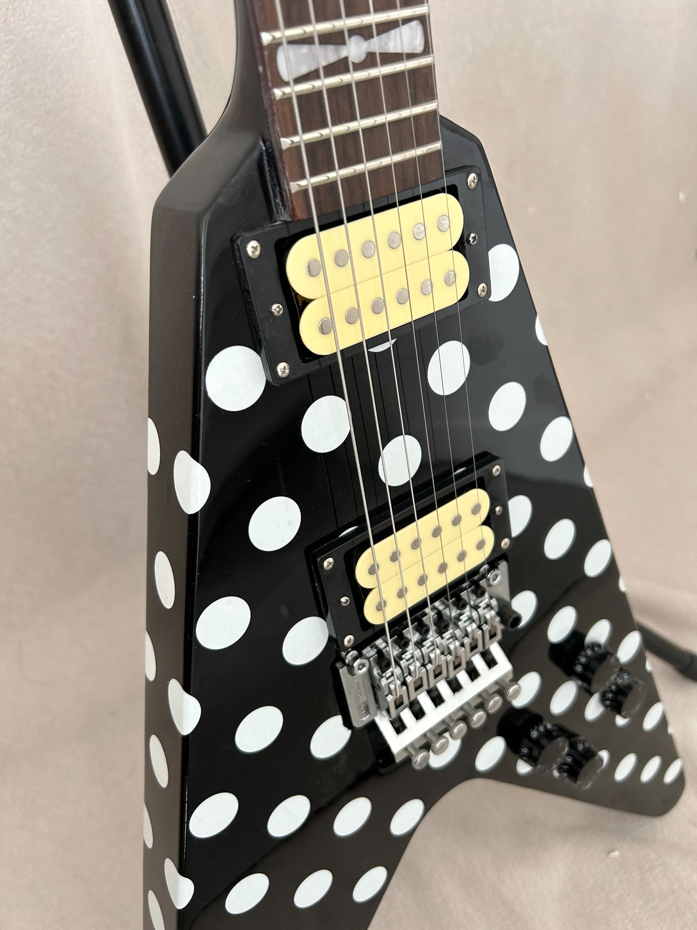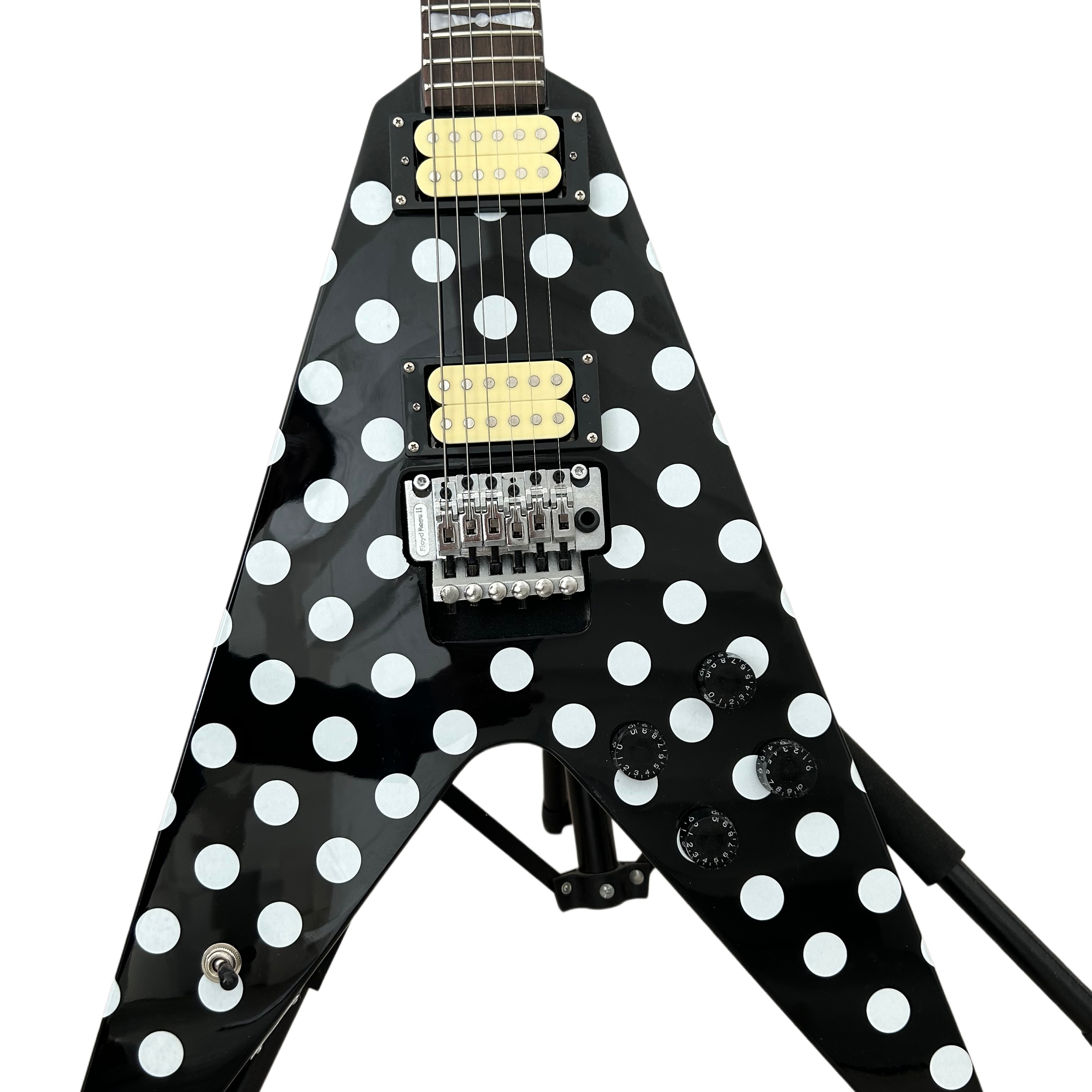 94% OFF | Flight V Randy Rhoads Polka White Dot Electric Guitar Black HH Pickups Guitar