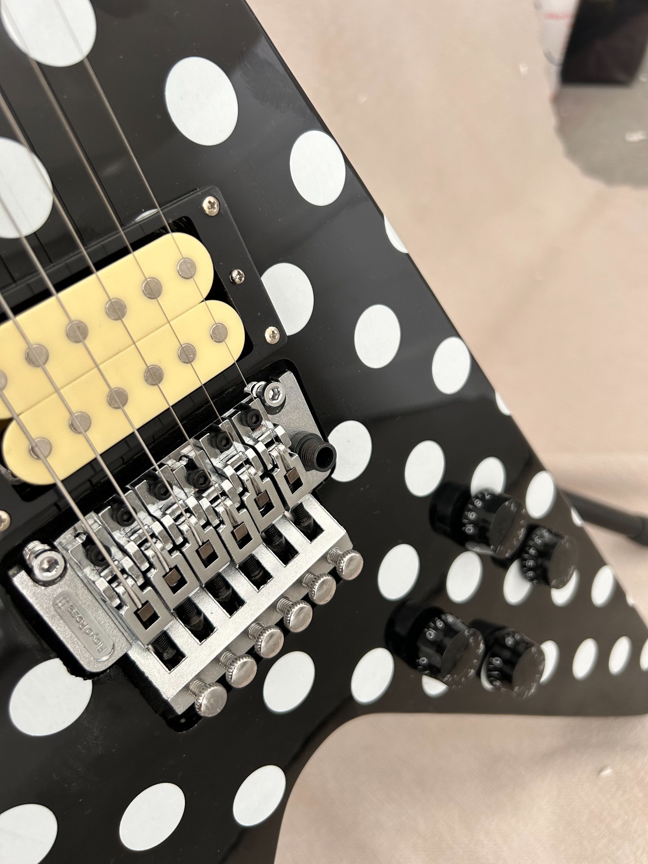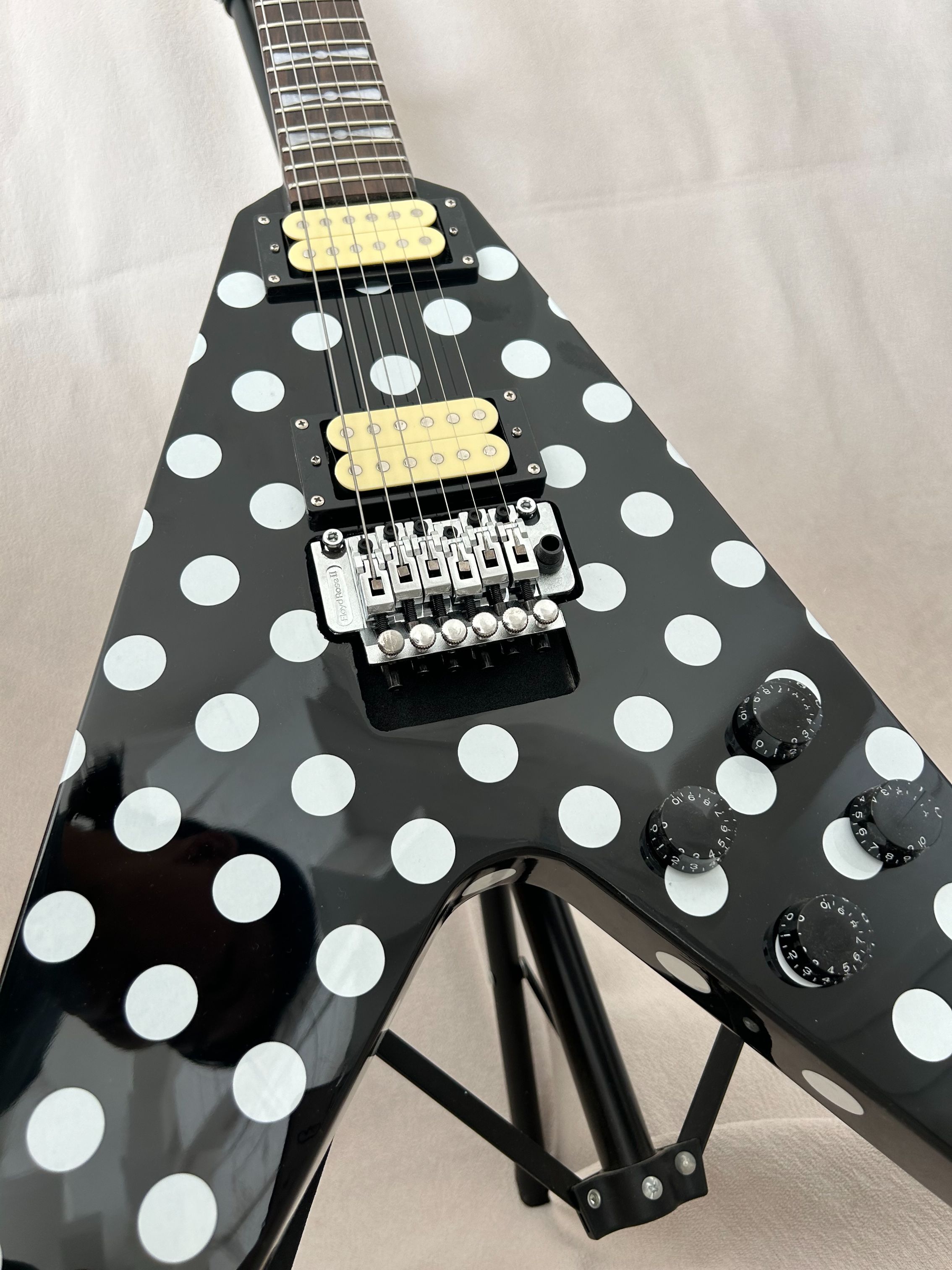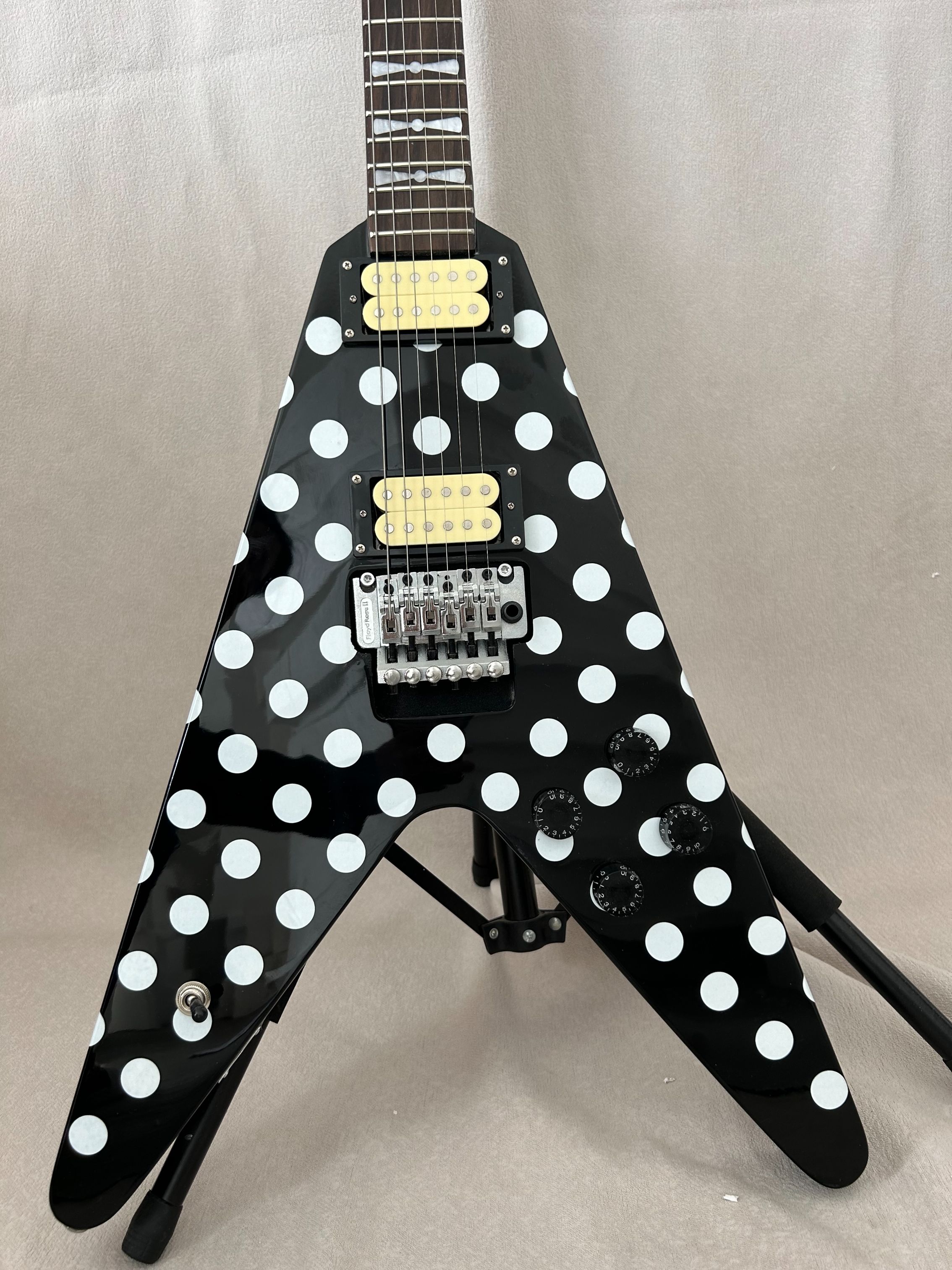 94% OFF | Flight V Randy Rhoads Polka White Dot Electric Guitar Black HH Pickups Guitar