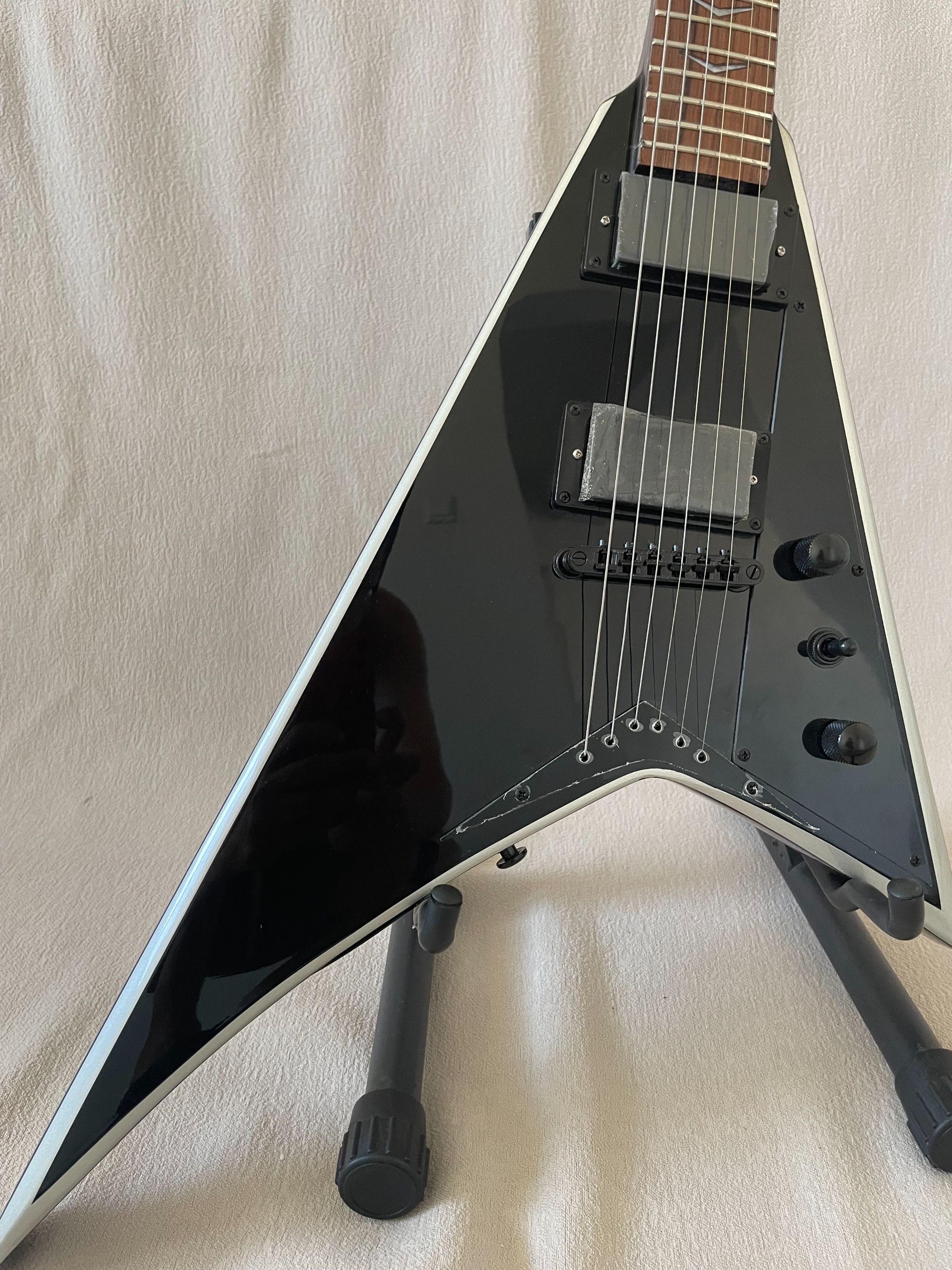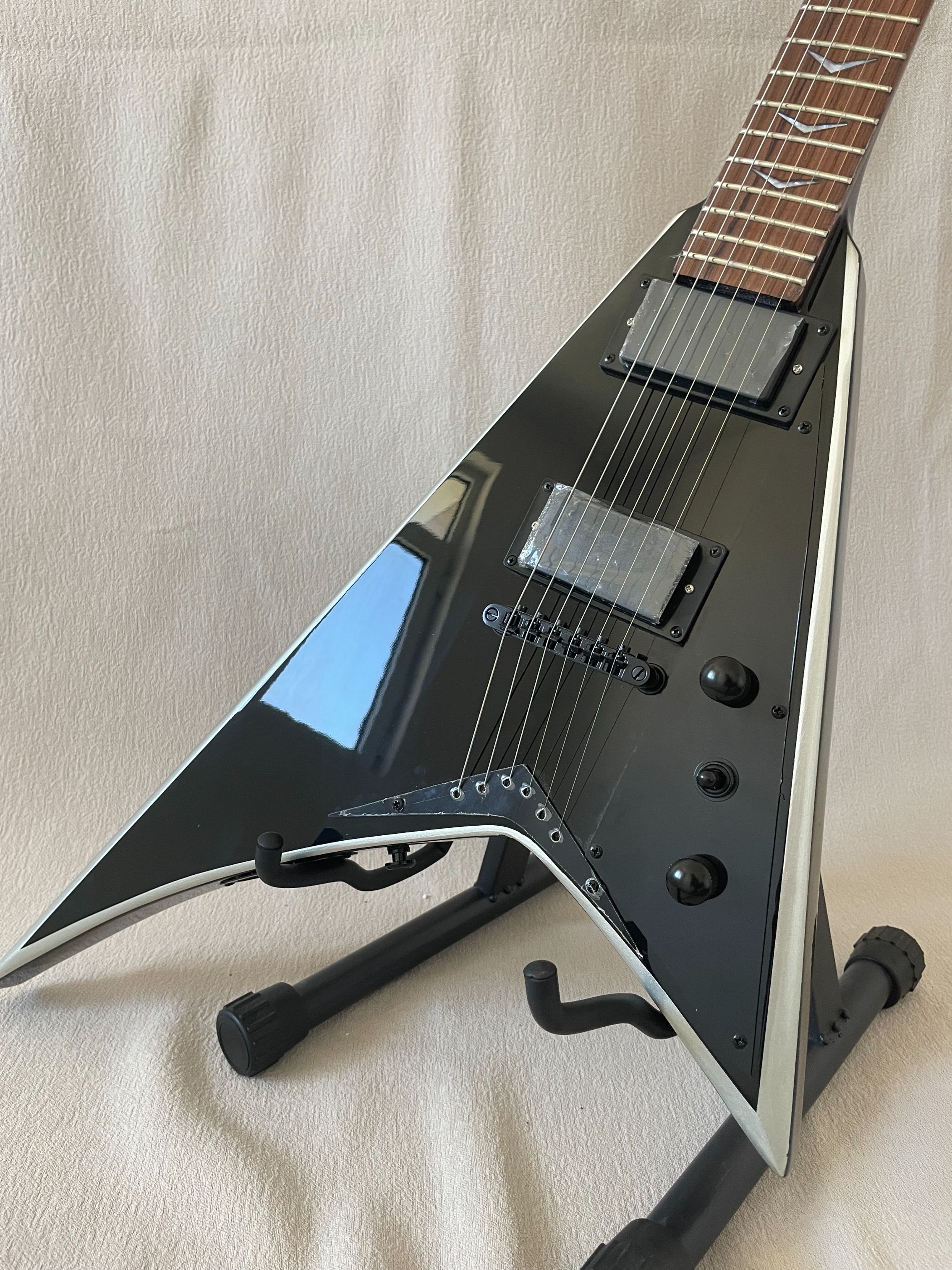 94% OFF | Brand New High Quality 6 String V-Shaped Electric Guitar Black Body, White Binding